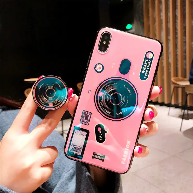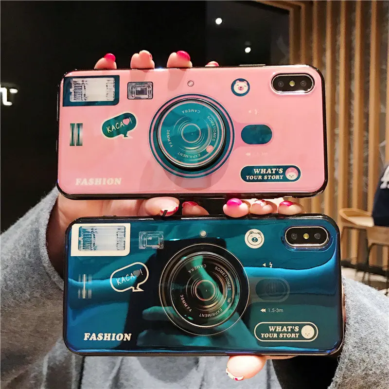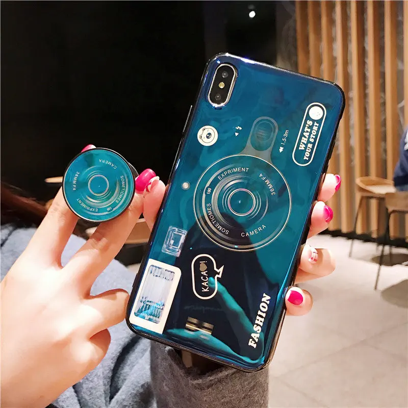 Factory wholesale IMD Camera Pattern Cell Phone Stand case for iphone 11 pro max X/XS,camera Case with holder for iphone XSmax