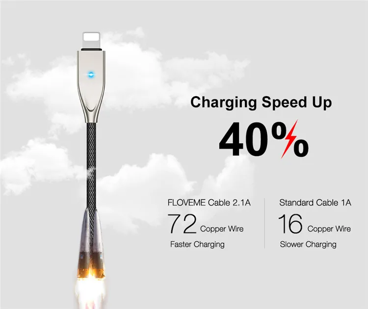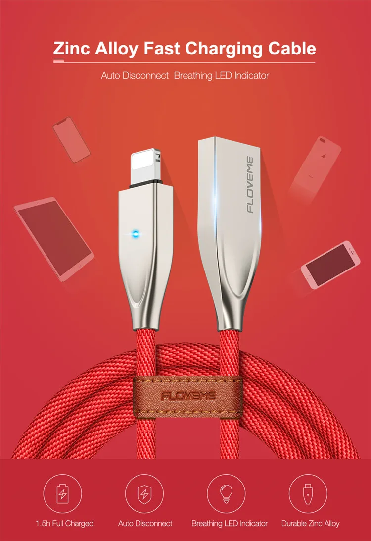 Free Shipping FLOVEME Lighting Usb Cable For iPhone 8 With Led Light For iPhone X Data Cable For iPad Data Charger Phone Cord