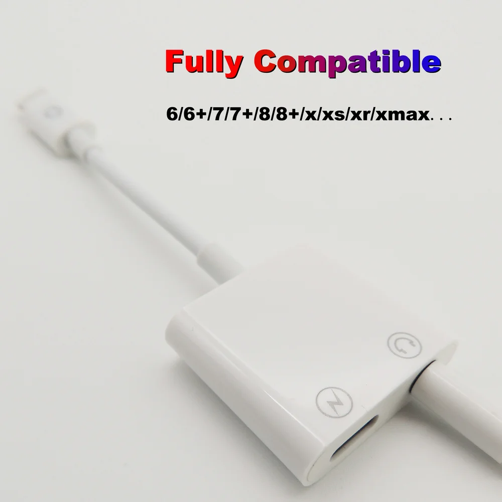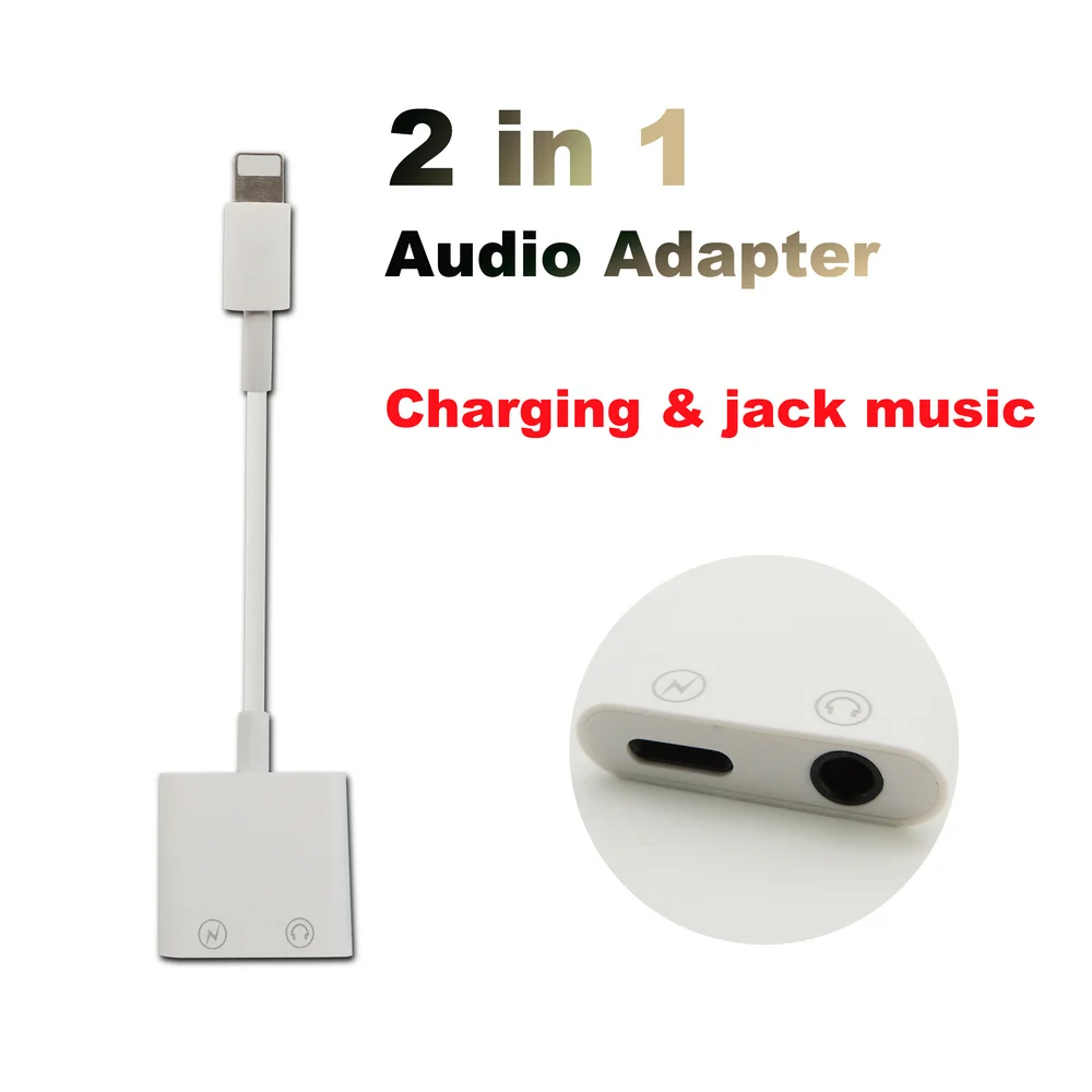 Multifunctional 2 in 1 Audio Adapter Data Charging 3.5mm Headphone Splitter Cable Earphone Aux Converter Cords for iPhone Jack
