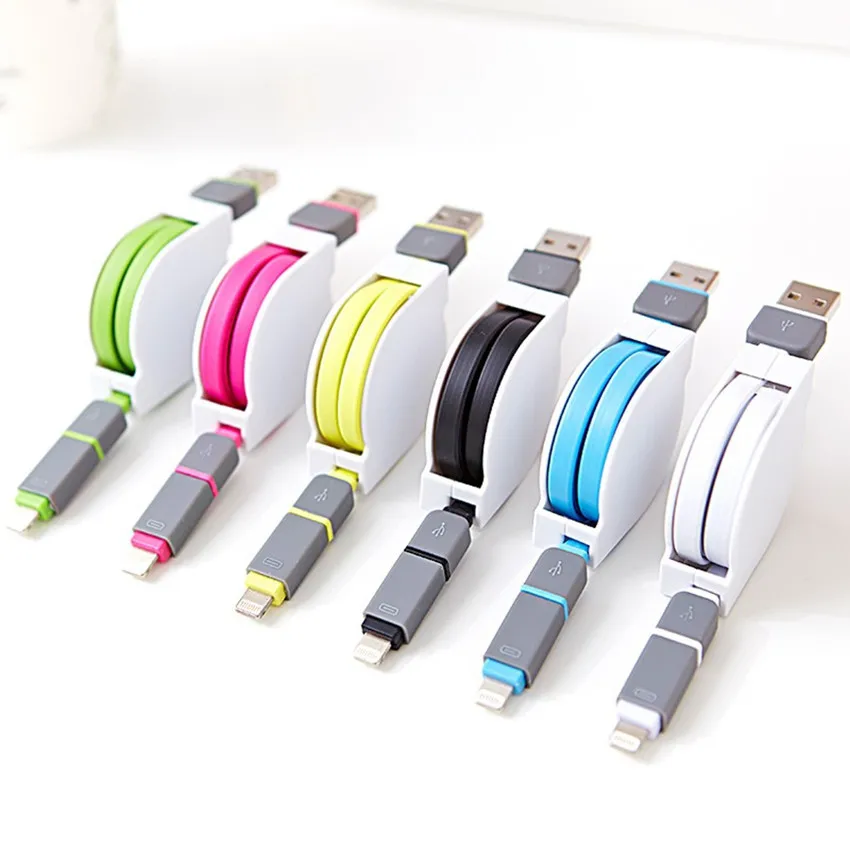 Retractable 2in1 Mobile Phone Cables For iPhone 5 5S 6 Charger ios Stretch Data Micro USB Cable For Samsung Galaxy S3 S4 S6