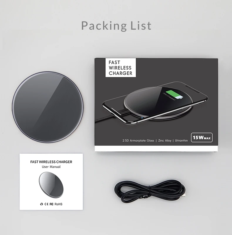 Package | 1x Wireless Charger Pad, 1x User Manual, 1x Cable |